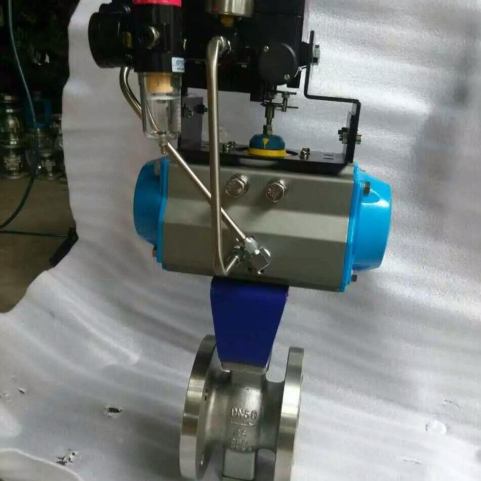气动V型球阀是一种球芯为V型结构的调节球阀,阀芯是1/4球壳,开有V型缺口,流通能力大,具有剪切力,能关闭严密等特点。气动V型球阀根据V型球芯与管道形成的V型角度,随着球的旋转,可使用中间开度面积的变化进行流量调节,并可切断流体中夹杂的杂质而关闭,适用于纸浆、砂浆、粘性流体的控制。