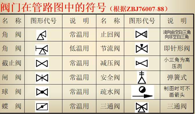 阀门在管路图中的符号