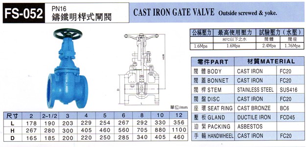 台湾富山阀门 铸铁明杆式闸阀FS052