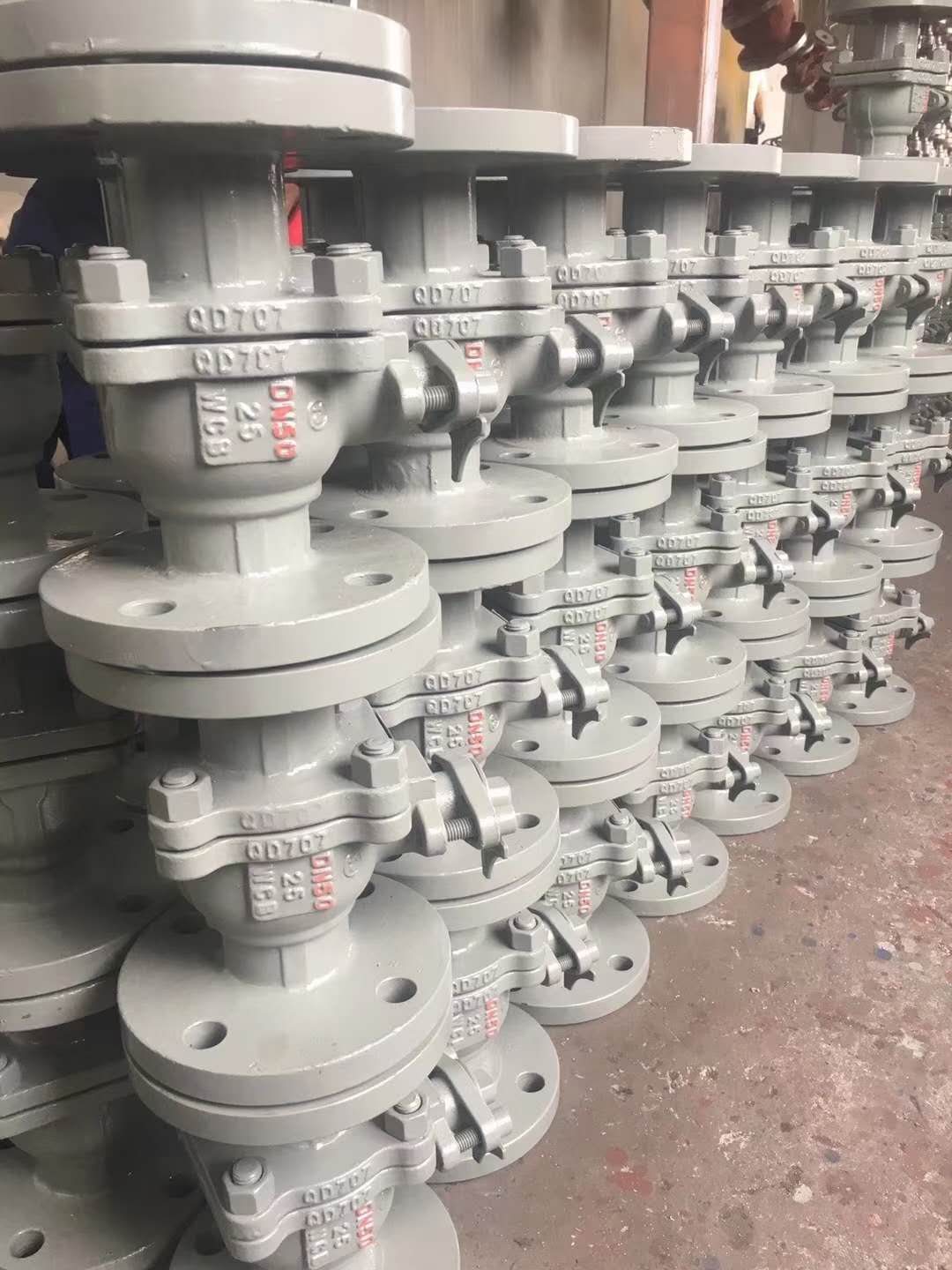 Q41F法兰铸钢球阀的关闭件是个球体,球体绕阀体心线作旋转来达到开启、关闭的一种阀门。 球阀在管路中主要用来做切断、分配和改变介质的流动方向。Q41F法兰铸钢球阀采用特殊设计的双斜面弹性密封圈,有效的降低了球体与密封圈之间的摩擦力,减少了操作力矩。当介质压力较小时,密封圈与球体接触面积较小,故有较大的密封比压,确保可靠密封。当介质压力较大时,密封圈与球铁接触面积也相应增大。故密封圈能承受较大的介质推力而不会损坏,确保可靠密封。