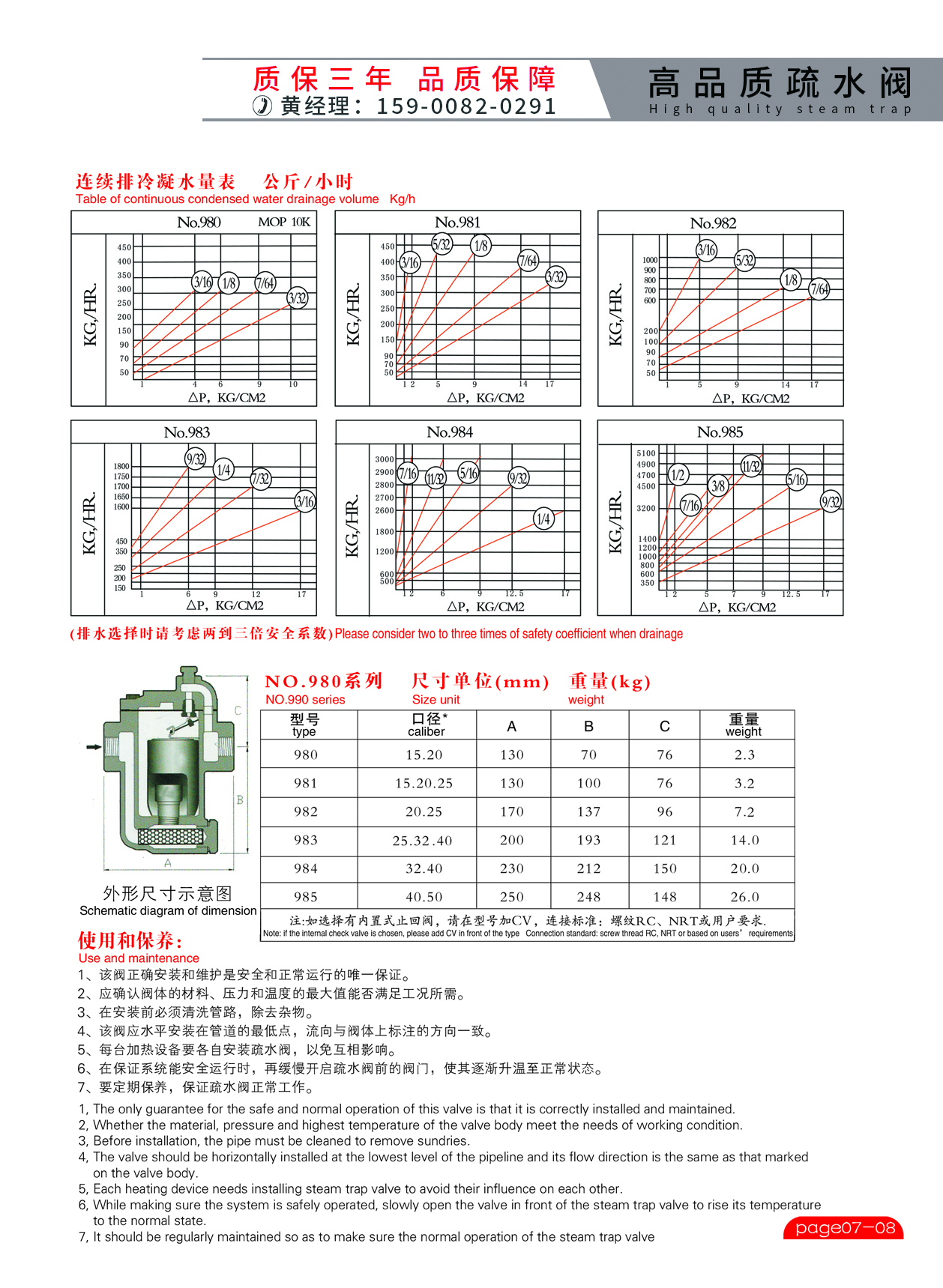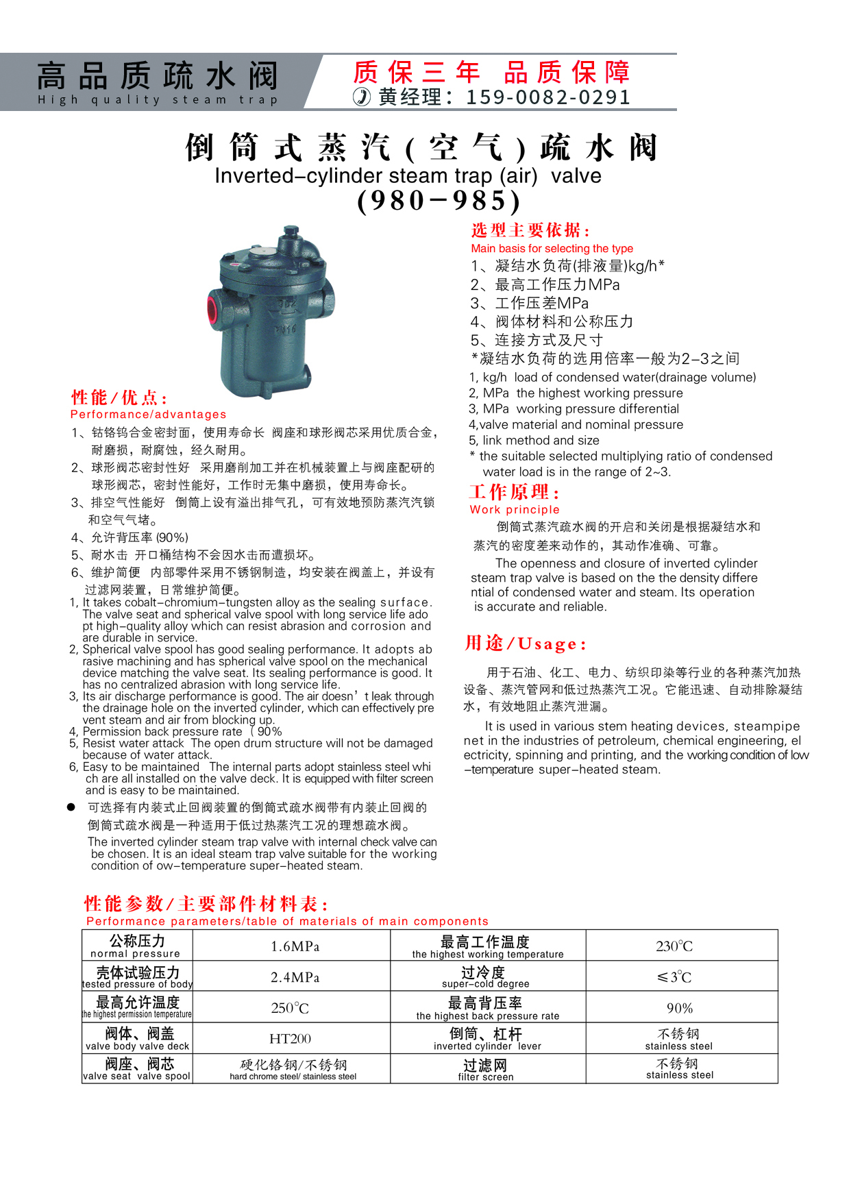 倒筒式疏水阀980疏水阀 981疏水阀 982疏水阀 983疏水阀 984疏水阀 985疏水阀