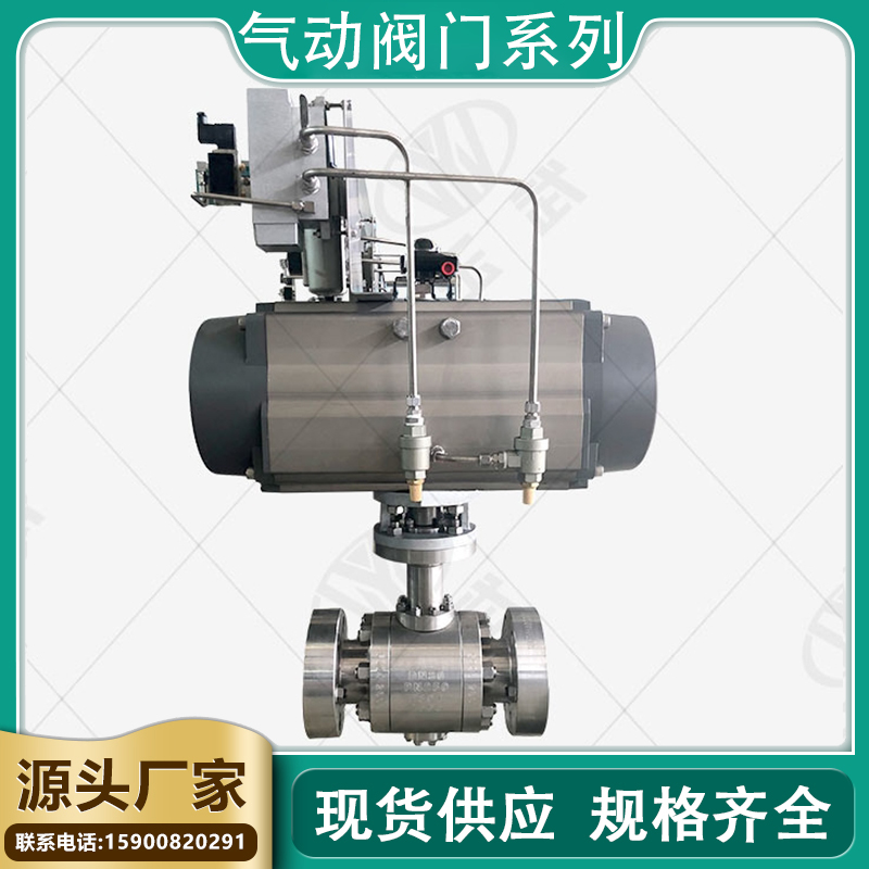 气动硬密封球阀,气动球阀,球阀是双向阀,流向无限制。中法兰用螺柱连接,上下阀杆均设有滑动轴承,减少磨擦,使用操作省力、平稳。在正常情况下:压力低时阀座密封依靠弹簧预紧力使阀座紧贴球体达到密封,压力高时,在阀座上形成活塞效应,在上游介质压力作用下,使阀座压紧球体达到密封、气动固定球阀,气动球阀,球阀广泛应用于过程控制系统实现开或关。