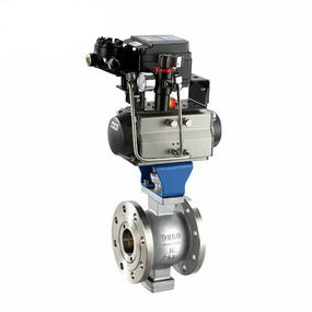 VQ640F/H气动V型调节球阀由活塞式气动执行机构和V型球阀组成,是一种由V型切口球面阀板在小开度范围内贴着密封面旋转而控制流体的角行程调节阀。V型切口球面板在增大调节比的同时,在截流时对密封环还有剪切作用,因此气动V型调节球阀适用于要求大调节比的控制系统,以及对含纤维质流体、料浆类流体的控制。气动V型球阀适用于两位切断、调节的场合,可配阀门定位器输入控制信号(4-20mADC或1-5VDC)气源即可控制运转。亦可配行程限位开关、电磁阀、三联件及0.4-0.7MPa气源可实现开关操作,并送出二对无源触点信号指示阀门的开关气动V型调节球阀具有连线简单,结构紧凑、尺寸小、重量轻、阻力小、动作稳定可靠等优点。气动V型球阀广泛应用于石油、化工、电力、冶金、钢铁、造纸、医药、食品、纺织、轻工等行业。
