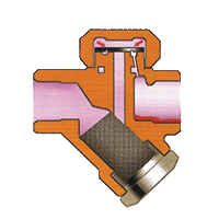 3、当蒸汽进入时,由于蒸汽的流速比凝结水快,阀片在蒸汽流动的吸力下迅速贴向阀座,同时由于阀片上部的受力面积(整个阀片)大于下部(蒸汽进口),所以阀片紧紧关闭阀口。 |