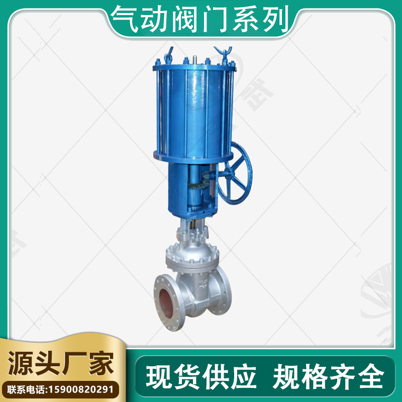 气缸盖上部装有气动-手动转换装置。将转换手柄顺时针方向提转到“气动”定位孔定位,闸阀处于气动操作状态;反之,将转换手柄逆时针方向提转到“手动”定于孔处定位,闸阀即可进行手动操作。带锥齿轮的手柄转换方向相反。手动操作闸阀时,手轮旋向和普通手动阀一样,即顺时针转为关,逆时针转为开。带锥齿轮转动的相反。