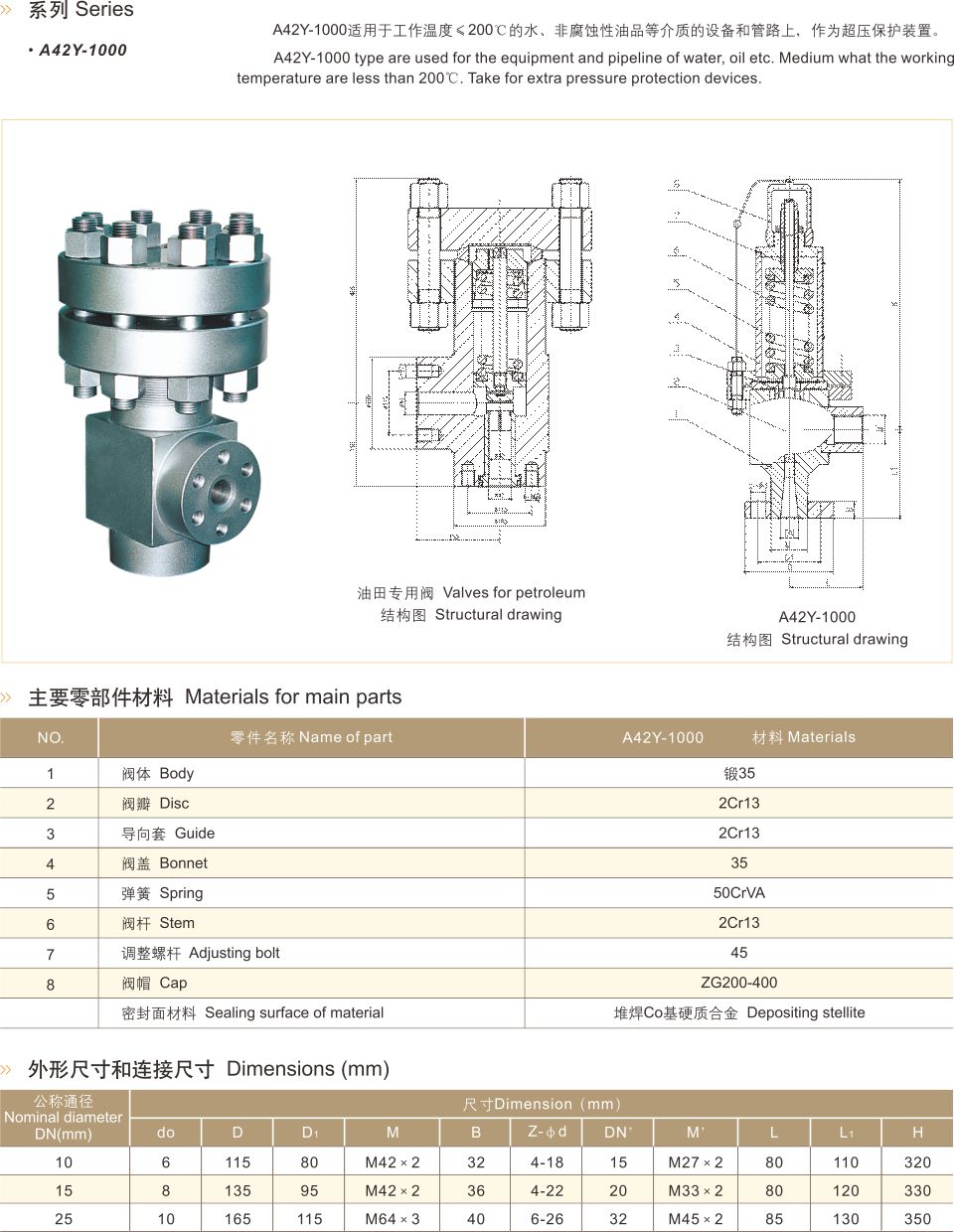全启式超高压安全阀 A42Y-1000适用于工作温度≤200℃的、非腐蚀性油品等介质的设备和管路上,作为超压保护装置。